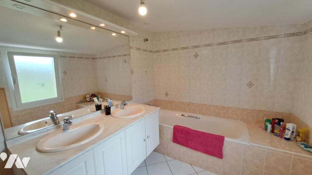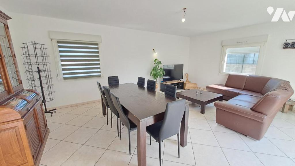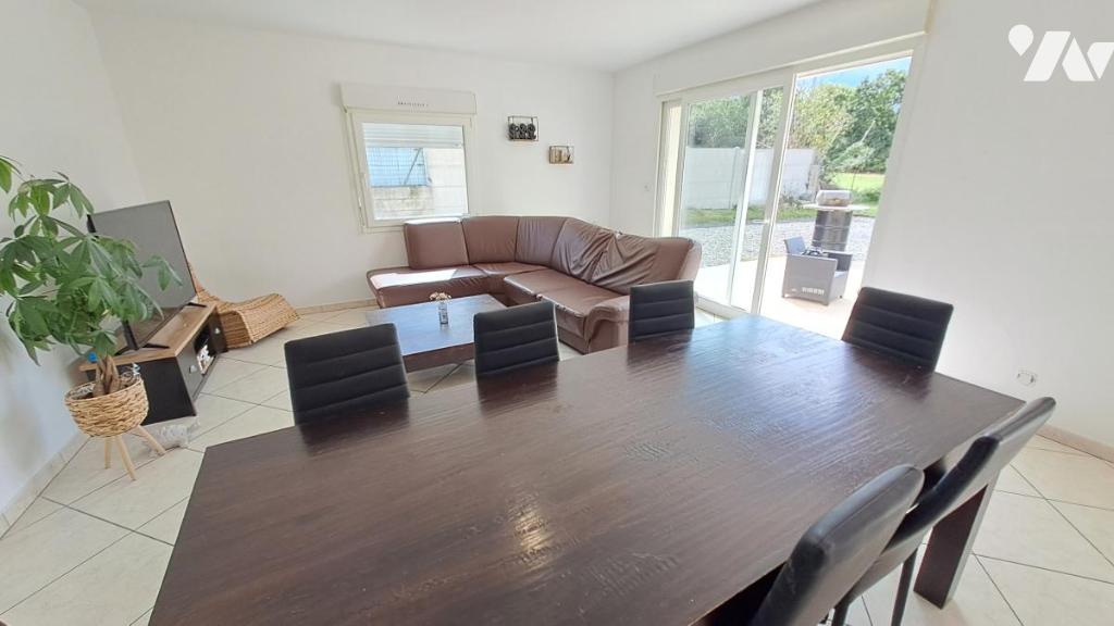 - Une pièce de vie lumineuse composée d'une cuisine aménagée et équipée ouverte sur le séjour-salon, dégagement desservant trois chambres, salle de bains, w.c., buanderie.